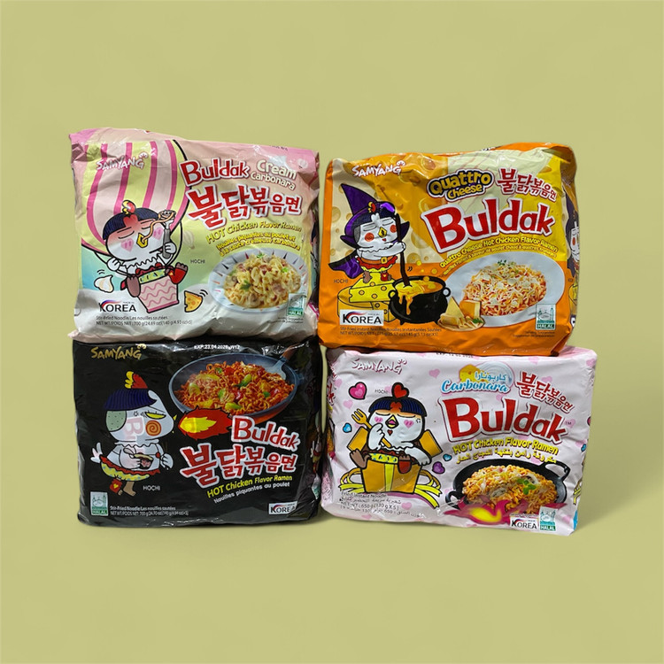 نودل کره ای سامیانگ اصلی در پنج طعم کاربونارا اسپایسی پنیری اسپایسی دوبل واردات تهلنجی زیتون